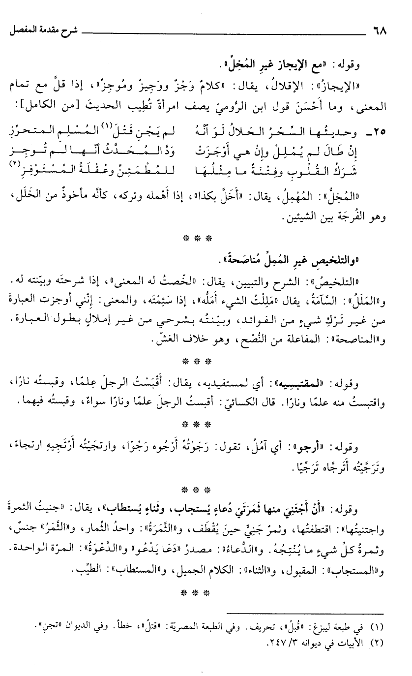 "والتلخيصِ غيرِ المُمِلِّ مُناصَحةٌ".