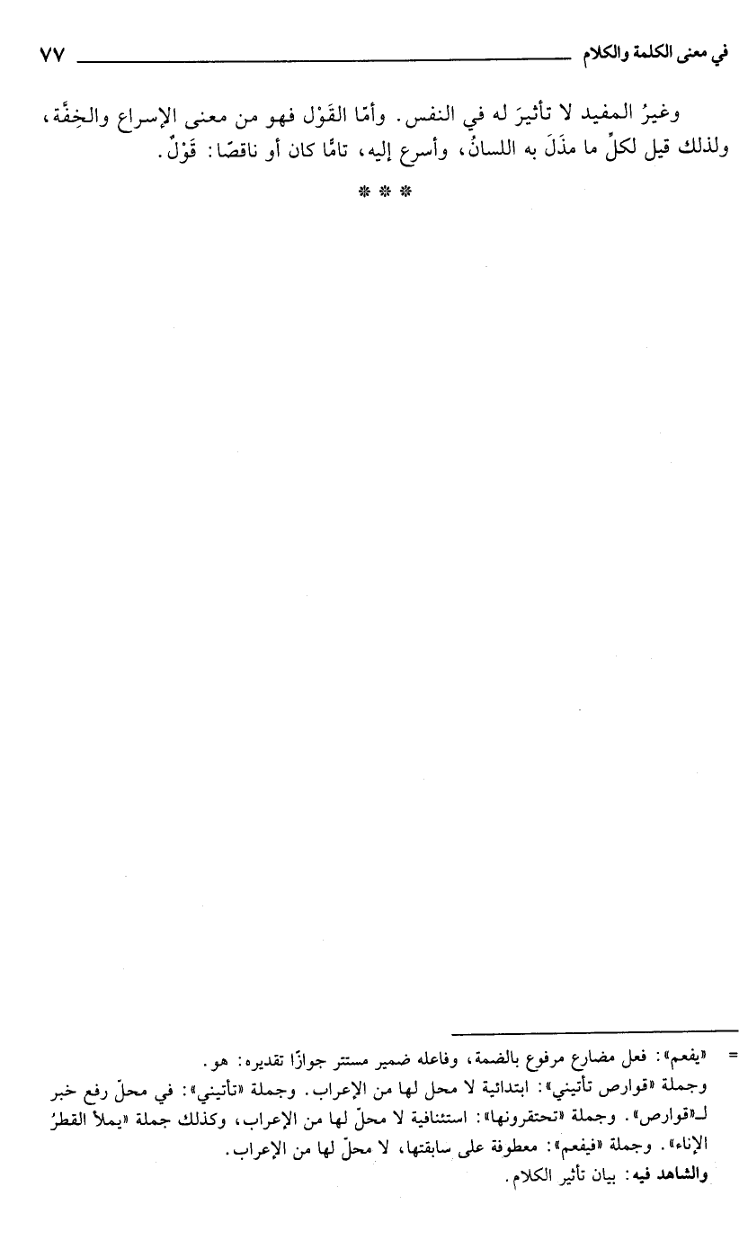 وغيرُ المفيد لا تأثيرَ له في النفس. وأمّا القَوْل فهو من معنى الإسراع والخِفَّة، ولذلك قيل لكلِّ ما مذَلَ به اللسانُ، وأسرع إليه، تامًّا كان أو ناقصًا: قَوْلٌ.
