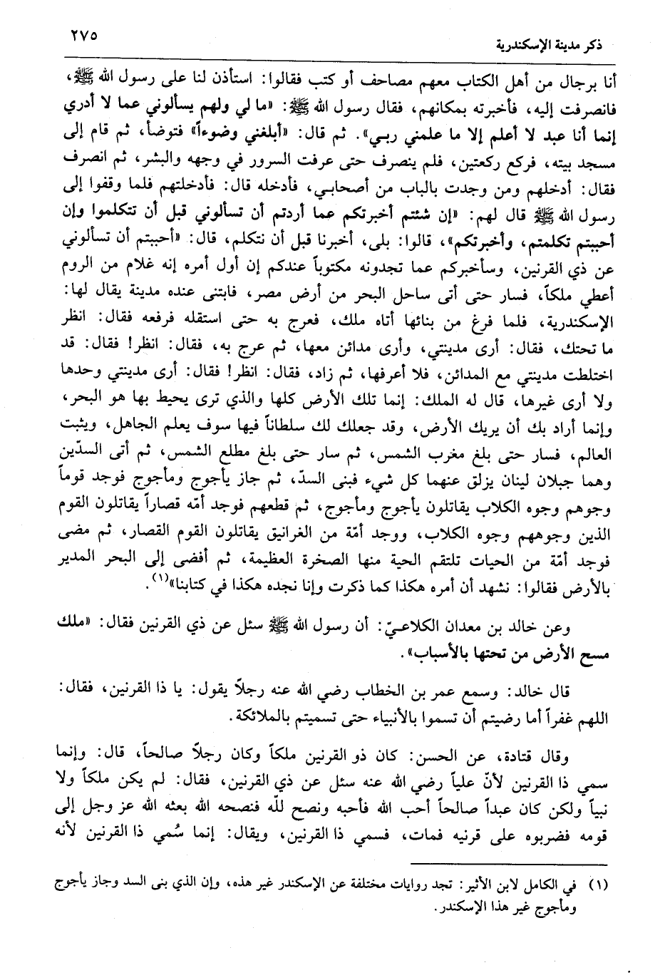 قال خالد: وسمع عمر بن الخطاب رضي الله عنه رجلا يقول: يا ذا القرنين، فقال: