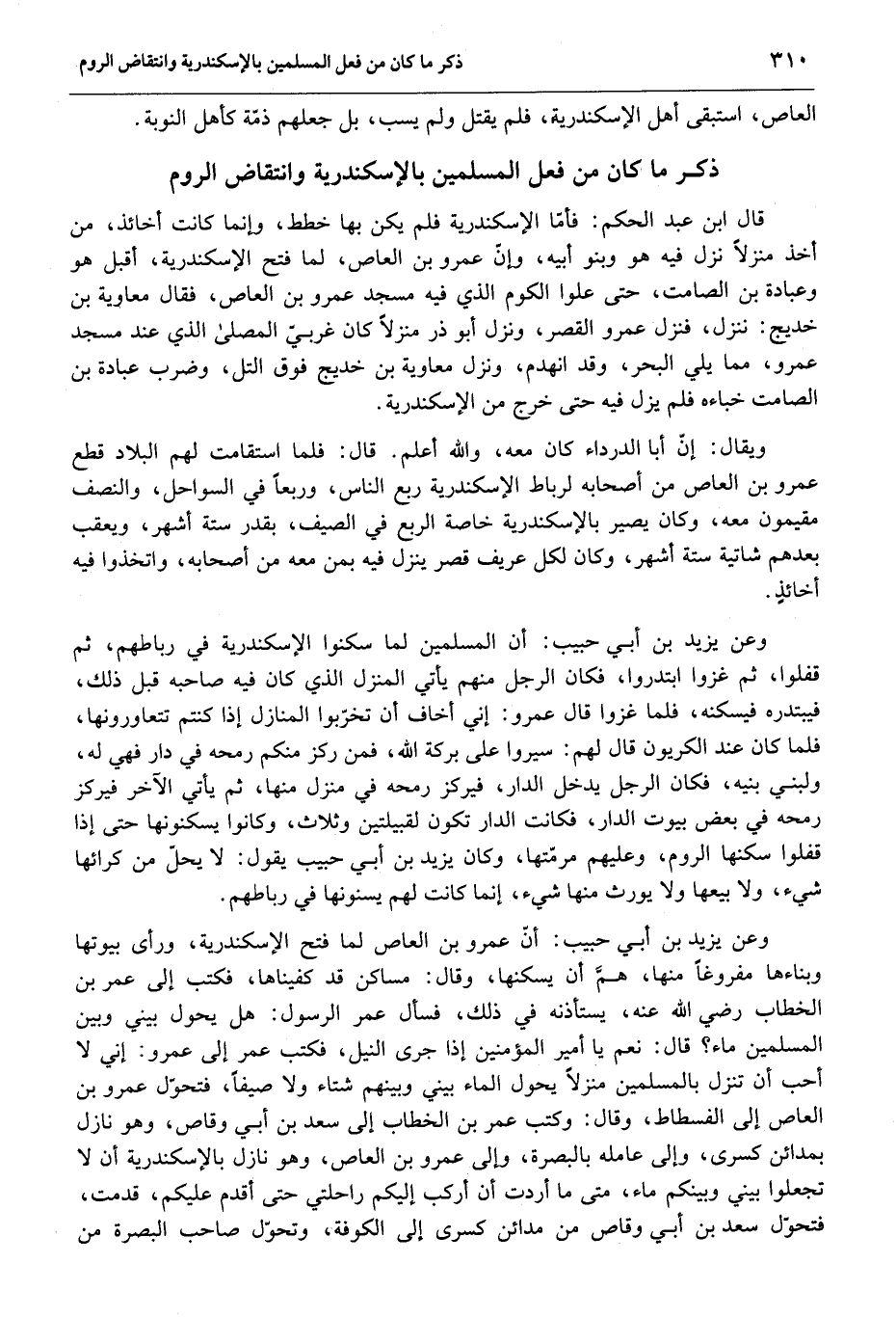 العاص، استبقى أهل الإسكندرية، فلم يقتل ولم يسب، بل جعلهم ذمّة كأهل النوبة.