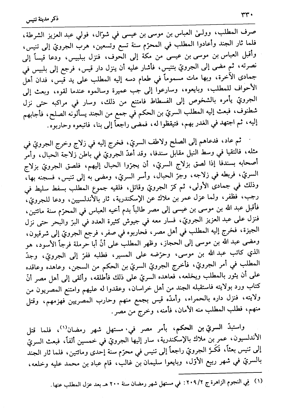 واستبدّ السريّ بن الحكم، بأمر مصر في مستهل شهر رمضان «1» ، فلما قتل الأندلسيون، عمر بن ملاك بالإسكندرية، سار إليها الجرويّ في خمسين ألفا، فبعث السريّ إلى تنيس بعثا، فكرّ الجرويّ راجعا إلى تنيس في محرّم سنة إحدى ومائتين، فلما ثار الجند بالسريّ في شهر ربيع الأوّل، وبايعوا سليمان بن غالب، قام عباد بن محمد عليه وخلعه،