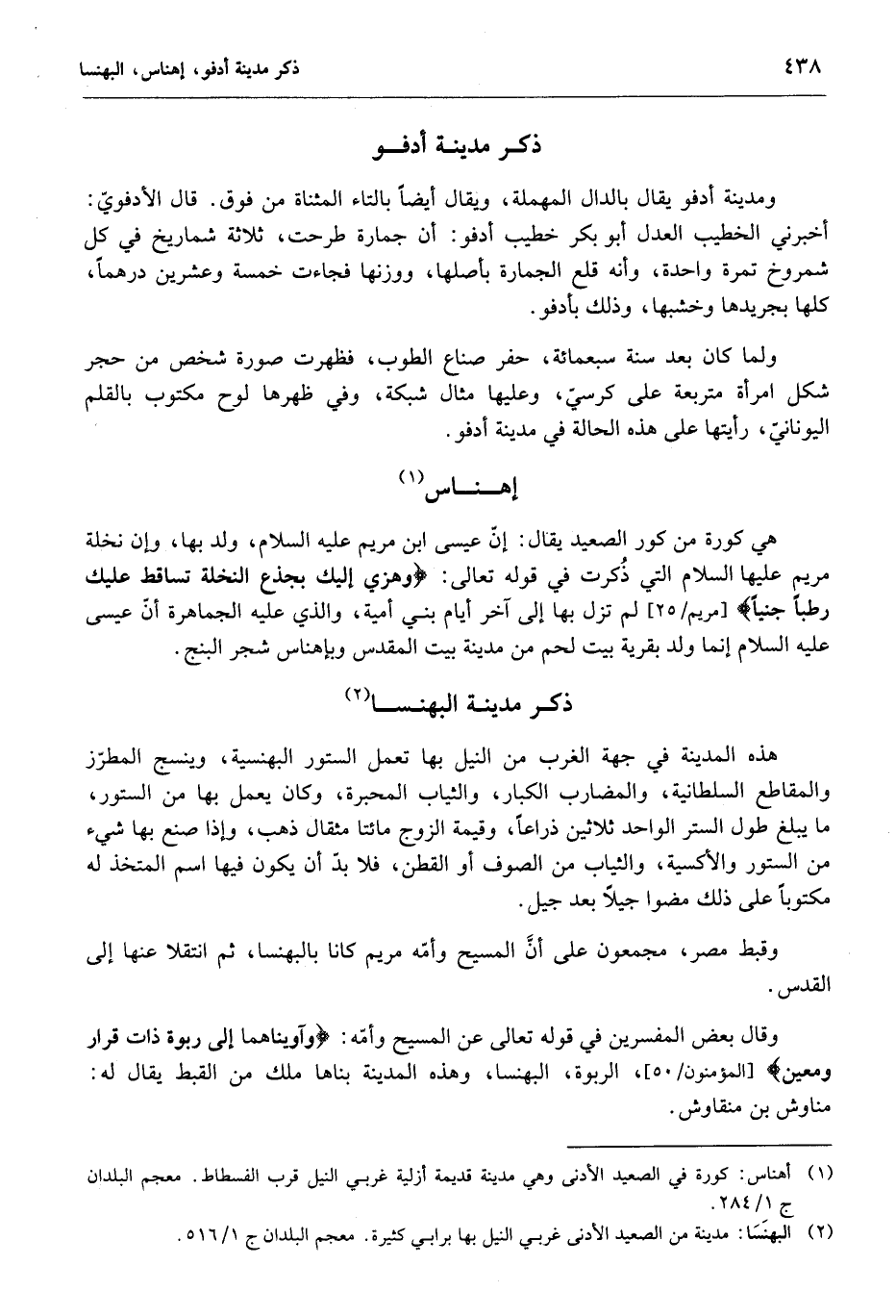 [المؤمنون/ 50] ، الربوة، البهنسا، وهذه المدينة بناها ملك من القبط يقال له: