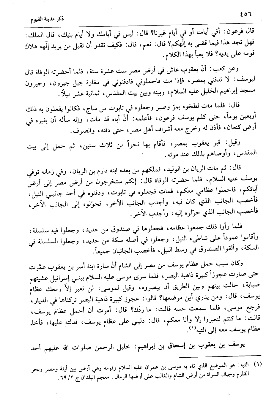وقيل: قبر يعقوب بمصر، فأقام بها نحوا من ثلاث سنين، ثم حمل إلى بيت المقدس، وأوصاهم بذلك عند موته.