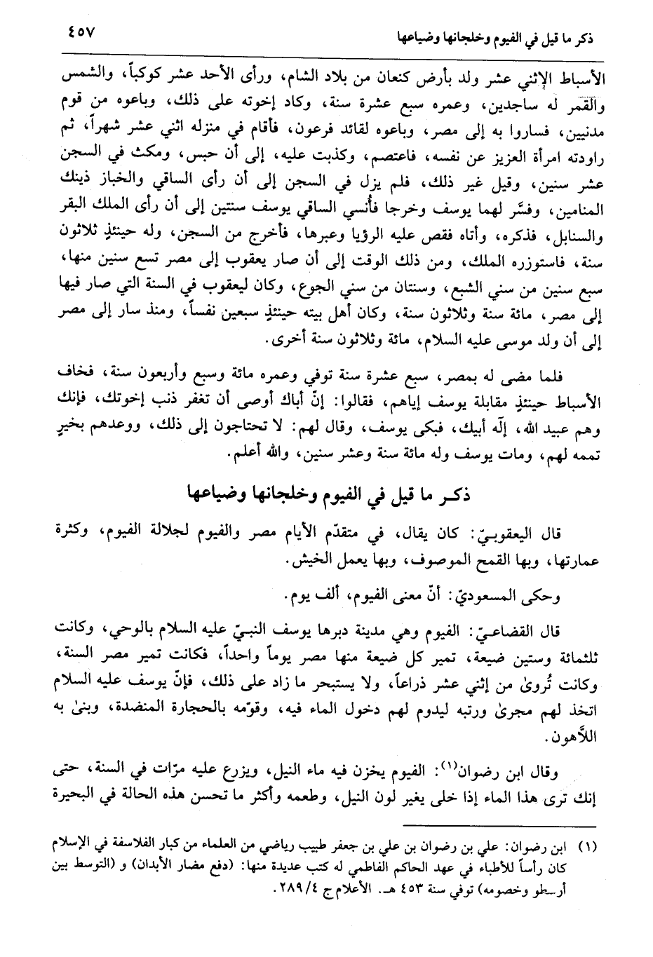ذكر ما قيل في الفيوم وخلجانها وضياعها