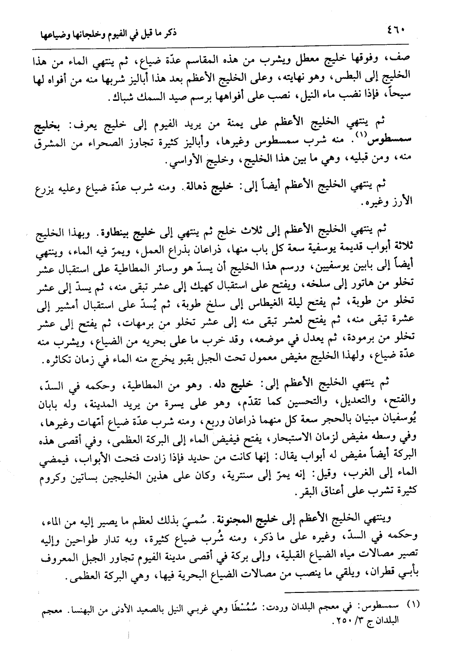 ثم ينتهي الخليج الأعظم على يمنة من يريد الفيوم إلى خليج يعرف: بخليج