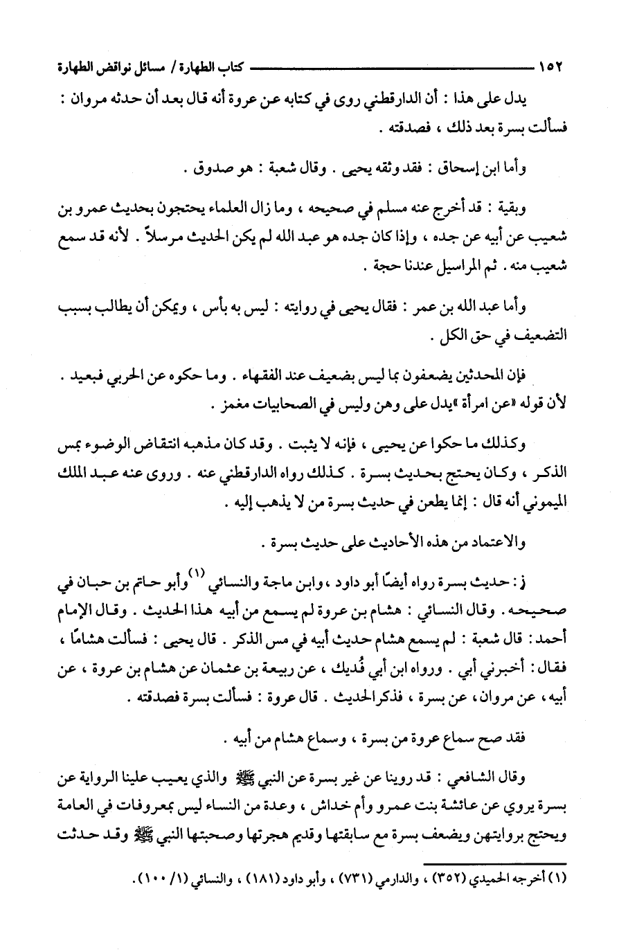 ز : حديث بسرة رواه أيضا أبو داود ، وابن ماجة والنسائي ( 1 ) وأبو حاتم بن حبان في صحيحه .