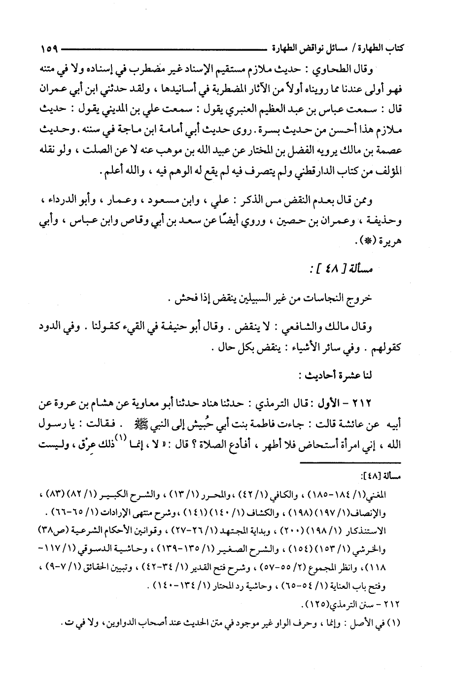 212 - الأول : قال الترمذي : حدثنا هناد حدثنا أبو معاوية عن هشام بن عروة عن أبيه عن عائشة قالت : جاءت فاطمة بنت أبي حبيش إلى النبي .