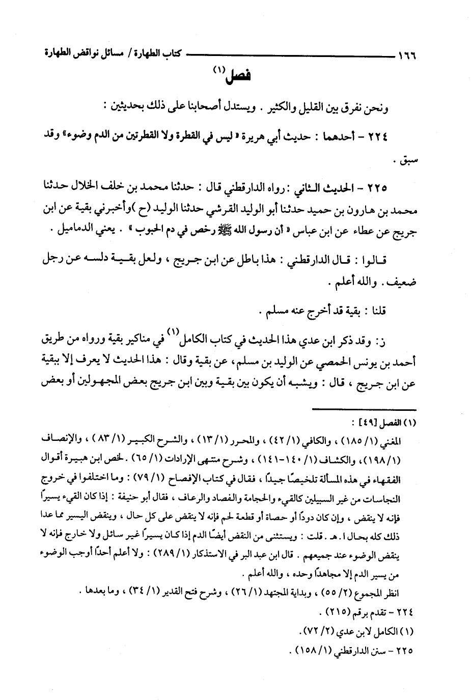 224 - أحدهما : حديث أبي هريرة ' ليس في القطرة ولا القطرتين من الدم وضوء ' وقد سبق .