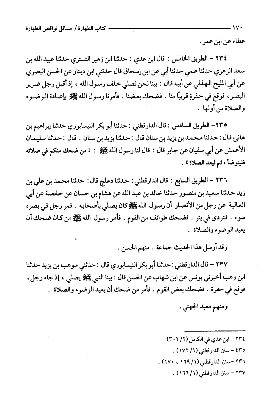 236 - الطريق السابع : قال الدارقطني : حدثنا دعلج قال : حدثنا محمد بن علي بن زيد حدثنا سعيد بن منصور حدثنا خالد بن عبد الله عن هشام بن حسان عن حفصة عن أبي العالية عن رجل من الأنصار أن رسول الله كان يصلي بأصحابه .