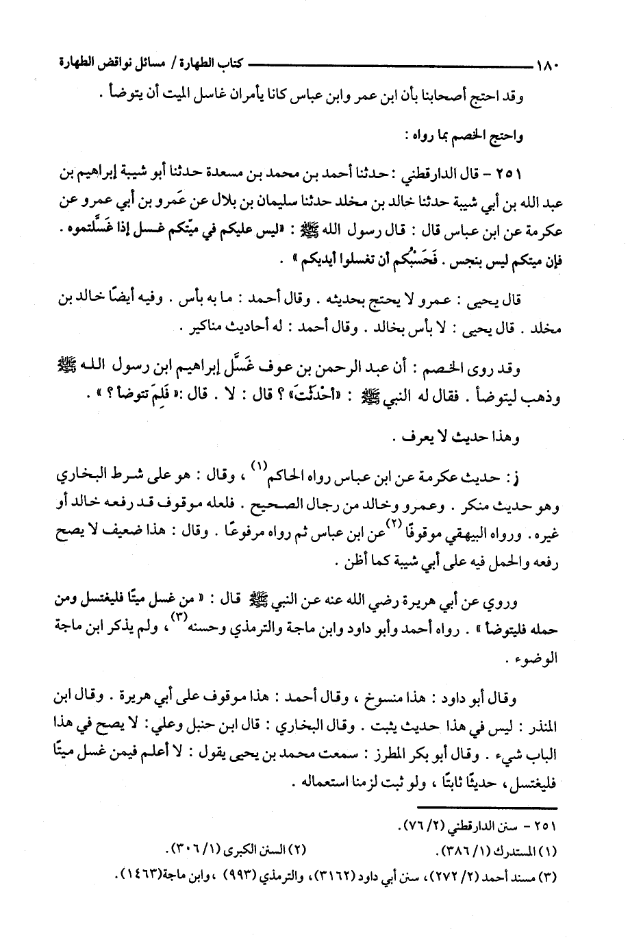 251 - قال الدارقطني : حدثنا أحمد بن محمد بن مسعدة حدثنا أبو شيبة إبراهيم بن عبد الله بن أبي شيبة حدثنا خالد بن مخلد حدثنا سليمان بن بلال عن عمرو بن أبي عمرو عن عكرمة عن ابن عباس قال : قال رسول الله : ' ليس عليكم في ميتكم غسل إذا غسلتموه .