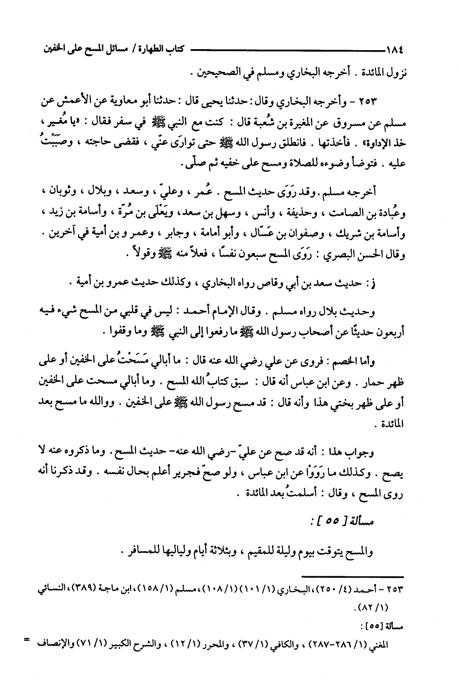 253 - وأخرجه البخاري وقال : حدثنا يحيى قال : حدثنا أبو معاوية عن الأعمش عن مسلم عن مسروق عن المغيرة بن شعبة قال : كنت مع النبي في سفر فقال : ' يا مغير ، خذ الإداوة ' .
