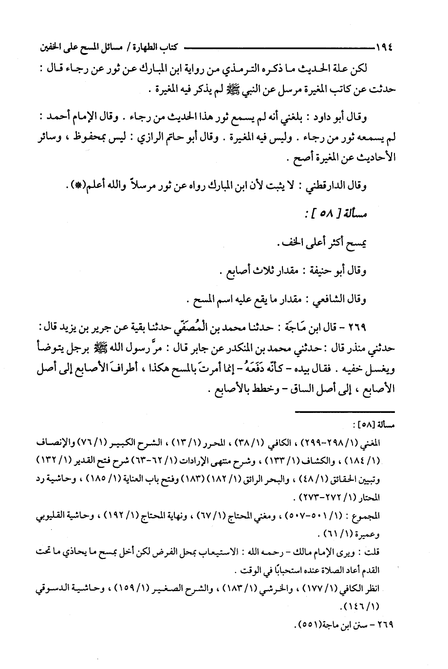 269 - قال ابن ماجة : حدثنا محمد بن المصفي حدثنا بقية عن جرير بن يزيد قال : حدثني منذر قال : حدثني محمد بن المنكدر عن جابر قال : مر رسول الله برجل يتوضأ ويغسل خفيه .