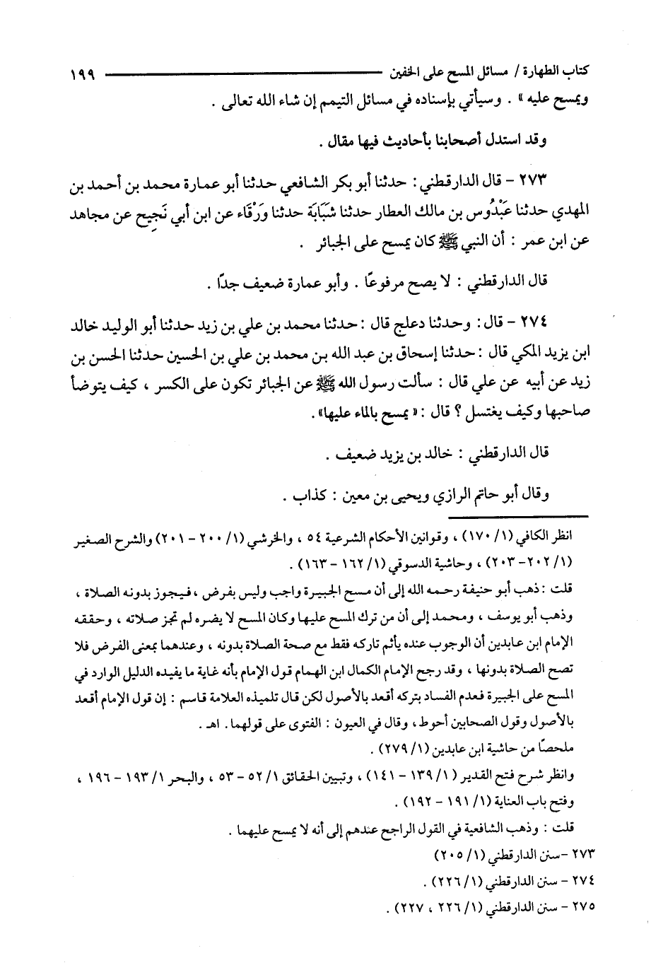 273 - قال الدارقطني : حدثنا أبو بكر الشافعي حدثنا أبو عمارة محمد بن أحمد بن المهدي حدثنا عبدوس بن مالك العطار حدثنا شبابة حدثنا ورقاء عن ابن أبي نجيح عن مجاهد عن ابن عمر : أن النبي كان يمسح على الجبائر .