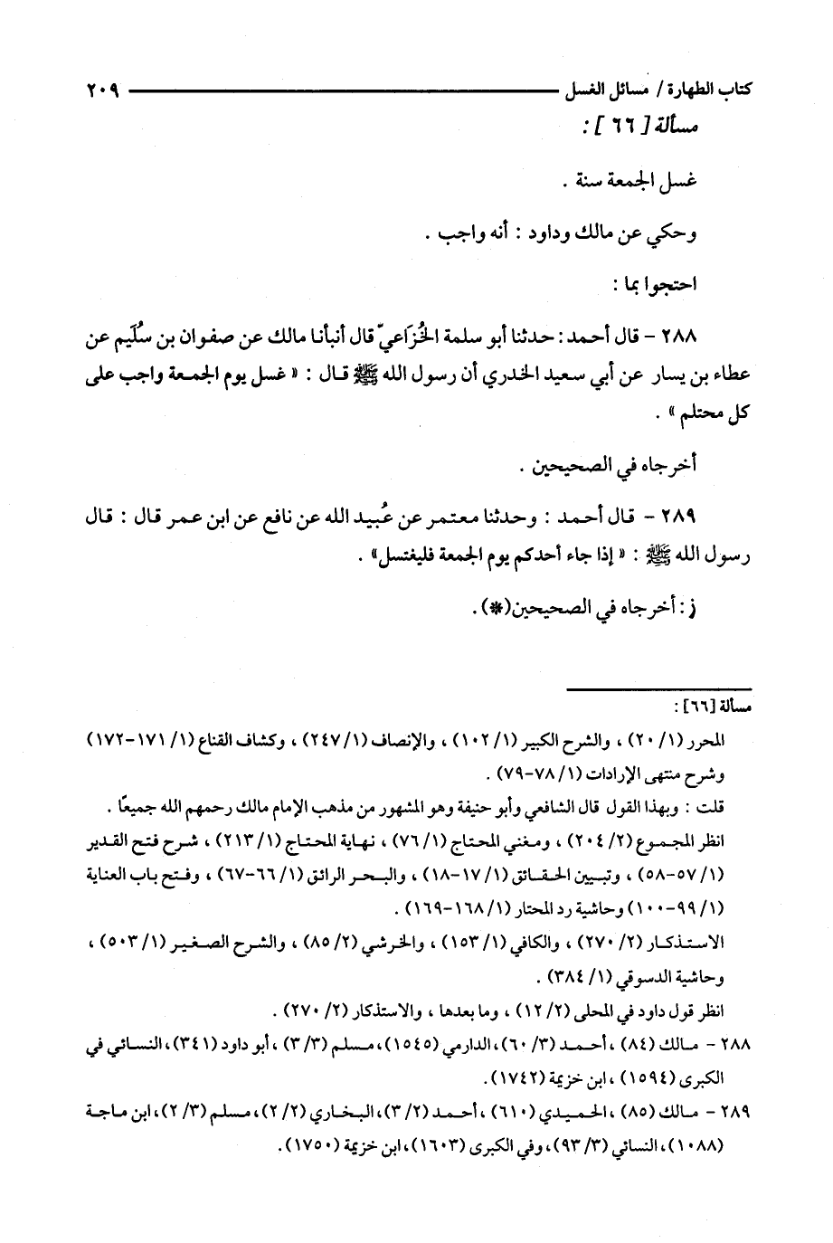 288 - قال أحمد : حدثنا أبو سلمة الخزاعي قال أنبأنا مالك عن صفوان بن سليم عن عطاء بن يسار عن أبي سعيد الخدري أن رسول الله قال : ' غسل يوم الجمعة واجب على كل محتلم ' .