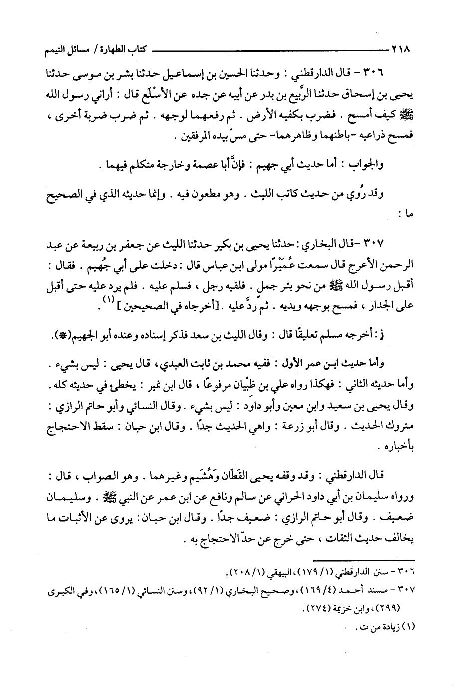 307 - قال البخاري : حدثنا يحيى بن بكير حدثنا الليث عن جعفر بن ربيعة عن عبد الرحمن الأعرج قال سمعت عميرا مولى ابن عباس قال : دخلت على أبي جهيم .