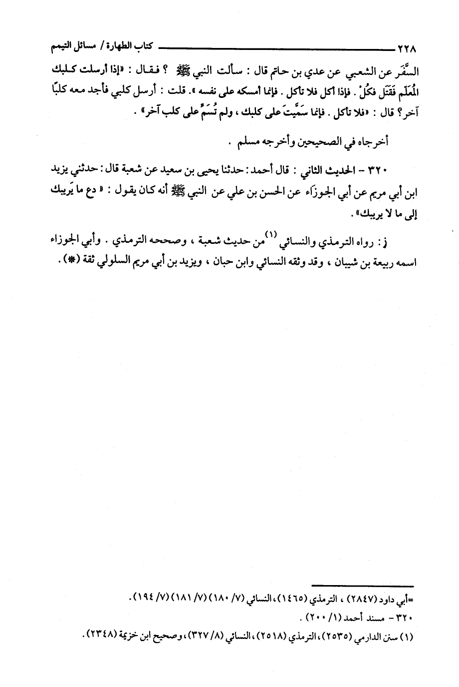 320 - الحديث الثاني : قال أحمد : حدثنا يحيى بن سعيد عن شعبة قال : حدثني يزيد ابن أبي مريم عن أبي الجوزاء عن الحسن بن علي عن النبي أنه كان يقول : ' دع ما يريبك إلى ما لا يريبك ' .
