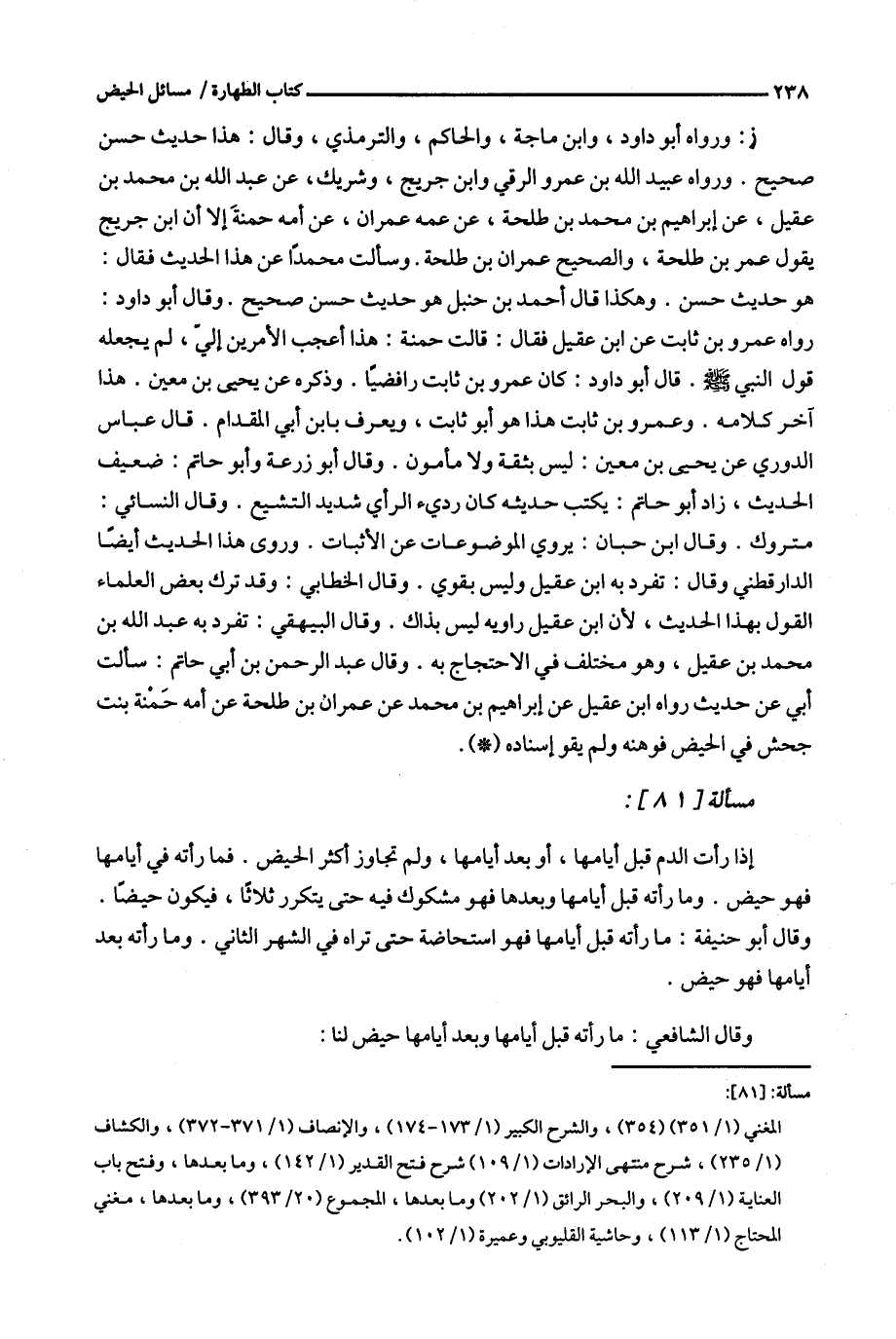 ورواه عبيد الله بن عمرو الرقي و ابن جريج ، وشريك ، عن عبد الله بن محمد بن عقيل ، عن إبراهيم بن محمد بن طلحة ، عن عمه عمران ، عن أمه حمنة إلا أن ابن جريج يقول عمر بن طلحة ، والصحيح عمران بن طلحة .