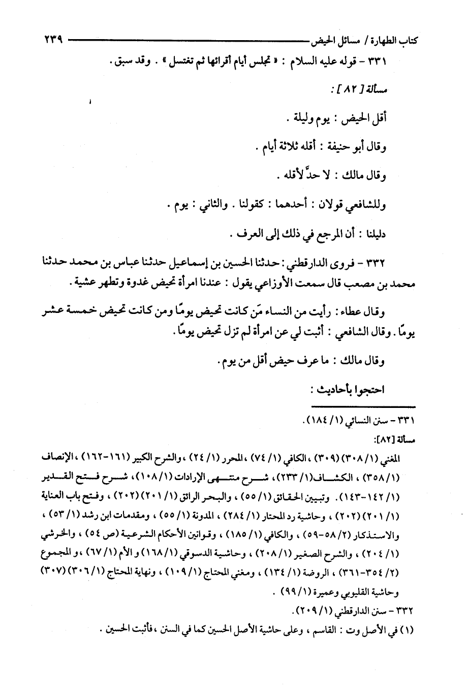 332 - فروى الدارقطني : حدثنا الحسين بن إسماعيل حدثنا عباس بن محمد حدثنا محمد بن مصعب قال سمعت الأوزاعي يقول : عندنا امرأة تحيض غدوة وتطهر عشية .