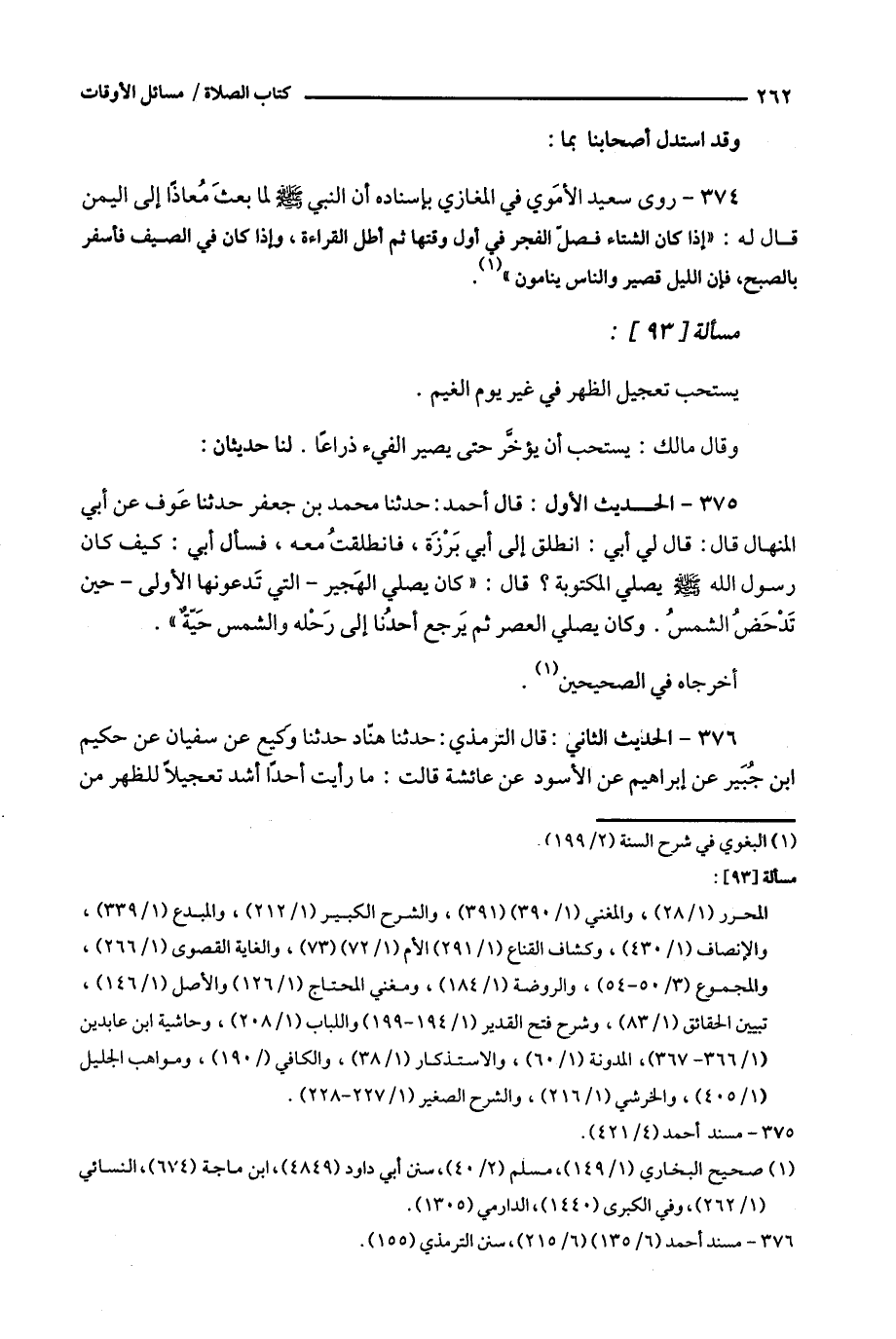 374 - روى سعيد الأموي في المغازي بإسناده أن النبي لما بعث معاذا إلى اليمن قال له : ' إذا كان الشتاء فصل الفجر في أول وقتها ثم أطل القراءة ، وإذا كان في الصيف فأسفر بالصبح ، فان الليل قصير والناس ينامون ' ( 1 ) .