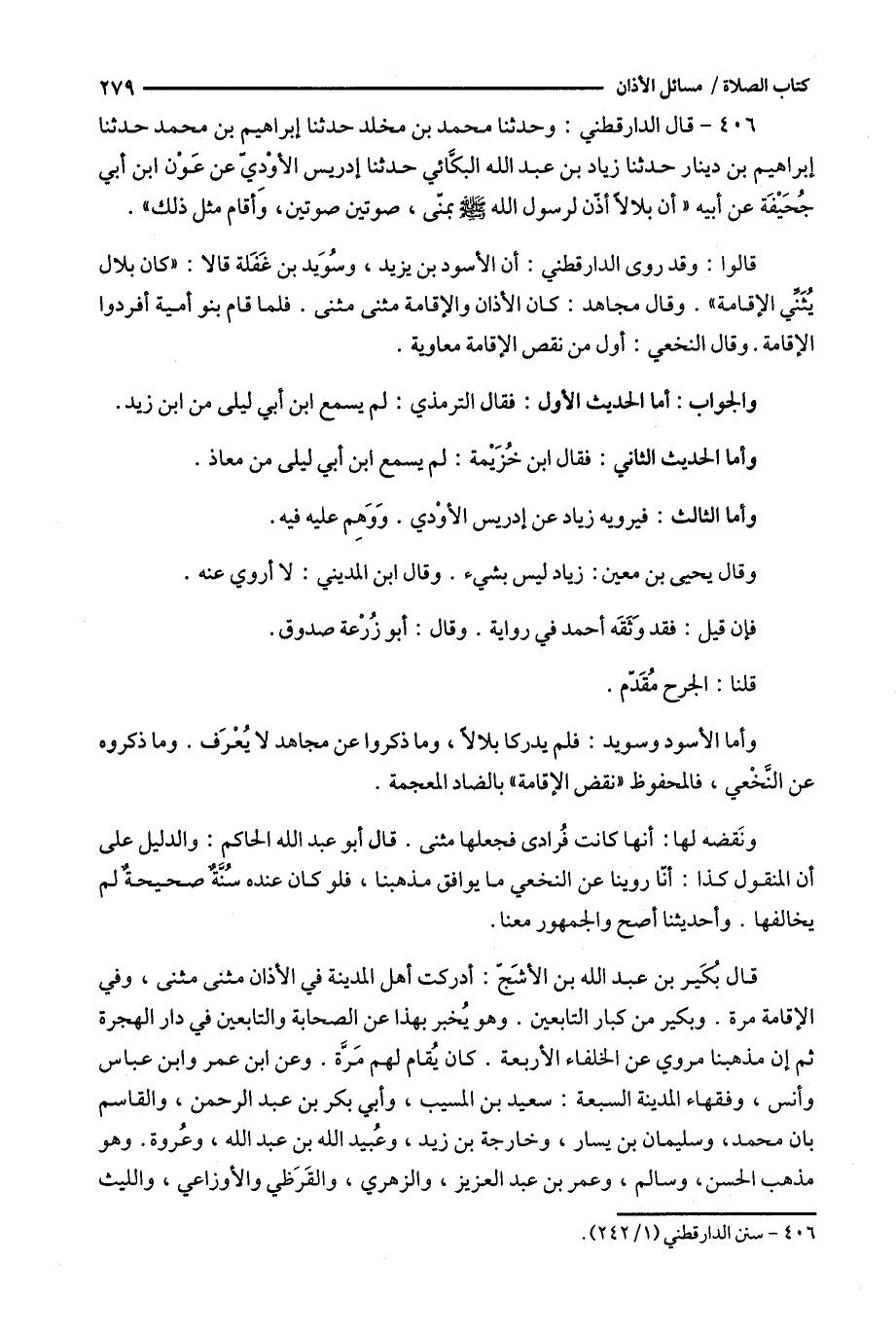قالوا : وقد روى الدارقطني ، أن الأسود بن يزيد ، وسويد بن غفلة قالا : : ' كان بلال يثني الإقامة ' .
