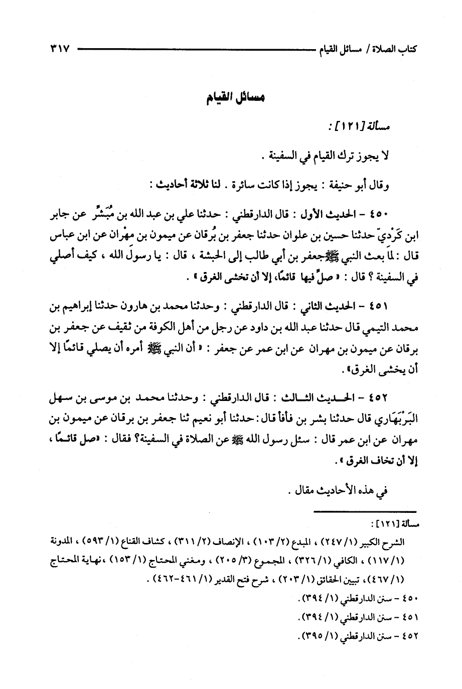 452 - الحديث الثالث قال الدار قطني : وحدثنا محمد بن موسى بن سهل البربهاري قال حدثنا بشر بن فأفأ قال : حدثنا أبو نعيم ثنا جعفر بن برقان عن ميمون بن مهران عن ابن عمر قال : سئل رسول الله عن الصلاة في السفينة ؟ فقال : ' صل قائما ، إلا أن تخاف الغرق ' .