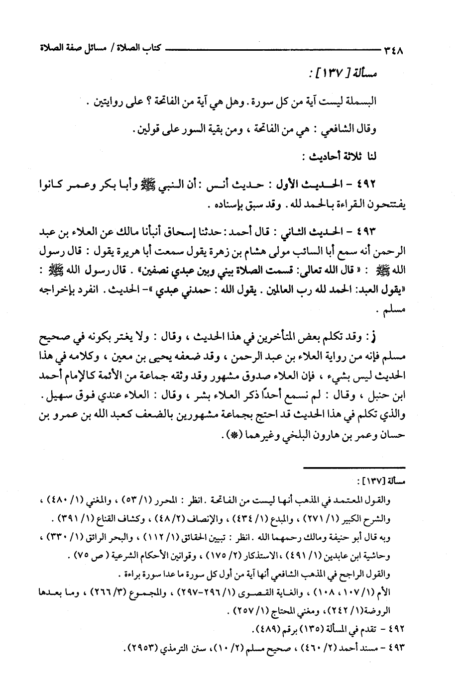 492 - الحديث الأول : حديث أنس : أن النبي وأبا بكر وعمر كانوا يفتتحون القراءة بالحمد لله .