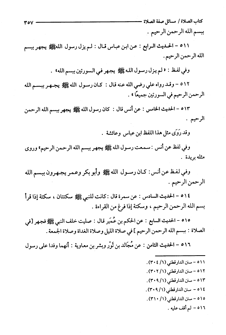 512 - وقد رواه علي رضي الله عنه قال : كان رسول الله يجهر ببسم الله الرحمن الرحيم في السورتين جميعا ) ) .
