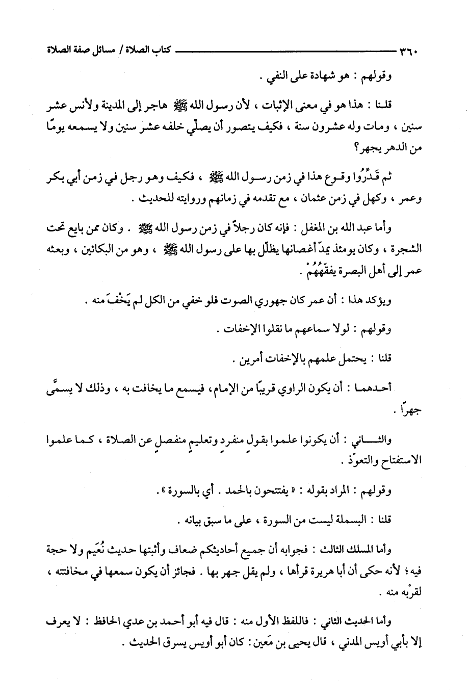 قلنا : هذا هو في معنى الإثبات ، لأن رسول الله هاجر إلى المدينة ولأنس عشر سنين ، ومات وله عشرون سنة ، فكيف يتصور أن يصلي خلفه عشر سنين ولا يسمعه يوما من الدهر يجهر ؟