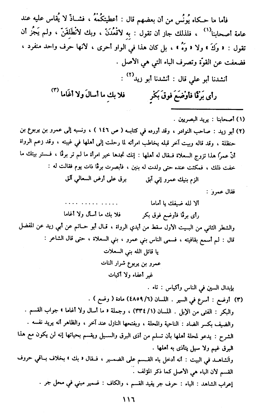 والشطر الثاني من البيت الأول سقط من أيدي الرواة، قال أبو حاتم عن أبي زيد عن المفضل قال: لم أسمع بقافيته: فسمى الناس بني عمرو، بني السعلاة، حتى قال الشاعر: