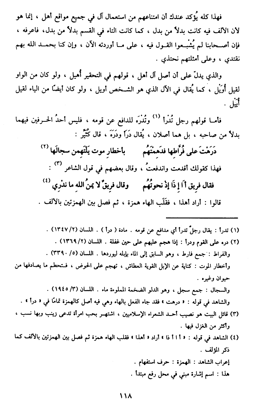 4 الشاهد في قوله: "أاأذا" أراد "أهذا" فقلب الهاء همزة ثم فصل بين الهمزتين بالألف كما ذكر المؤلف.