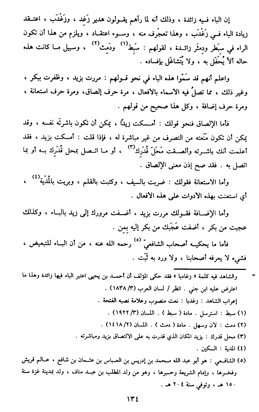 فأما الإلصاق فنحو قولك أمسكت زيدا، يمكن أن تكون باشرته نفسه، وقد يمكن أن تكون منعته من التصرف من غير مباشرة له، فإذا قلت: أمسكت بزيد، فقد أعلمت أنك باشرته وألصقت محل قدرك3، أو ما اتصل بمحل قدرك به أو بما اتصل به، فقد صح إذن معنى الإلصاق.