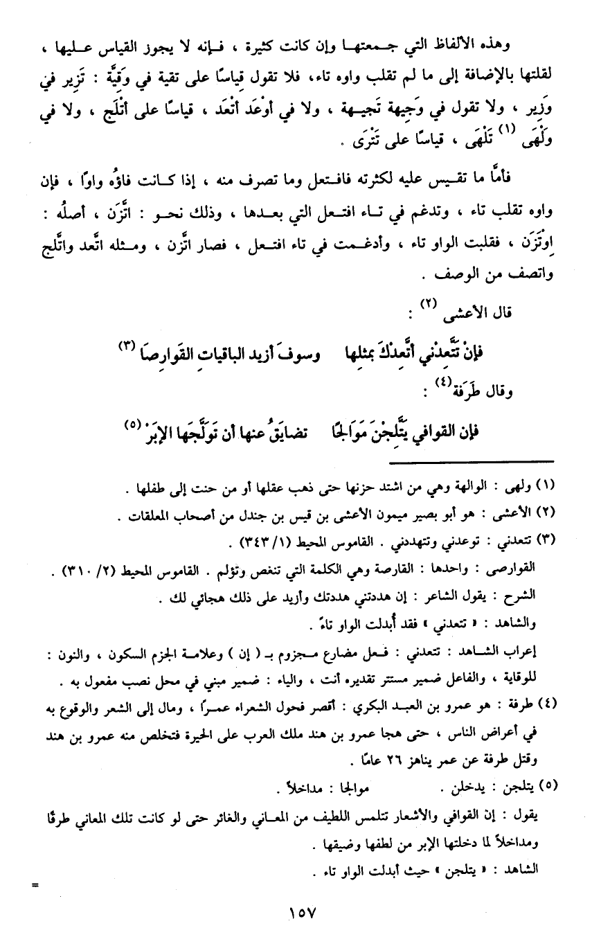 والشاهد: "تتعدني" فقد أبدلت الواو تاء.