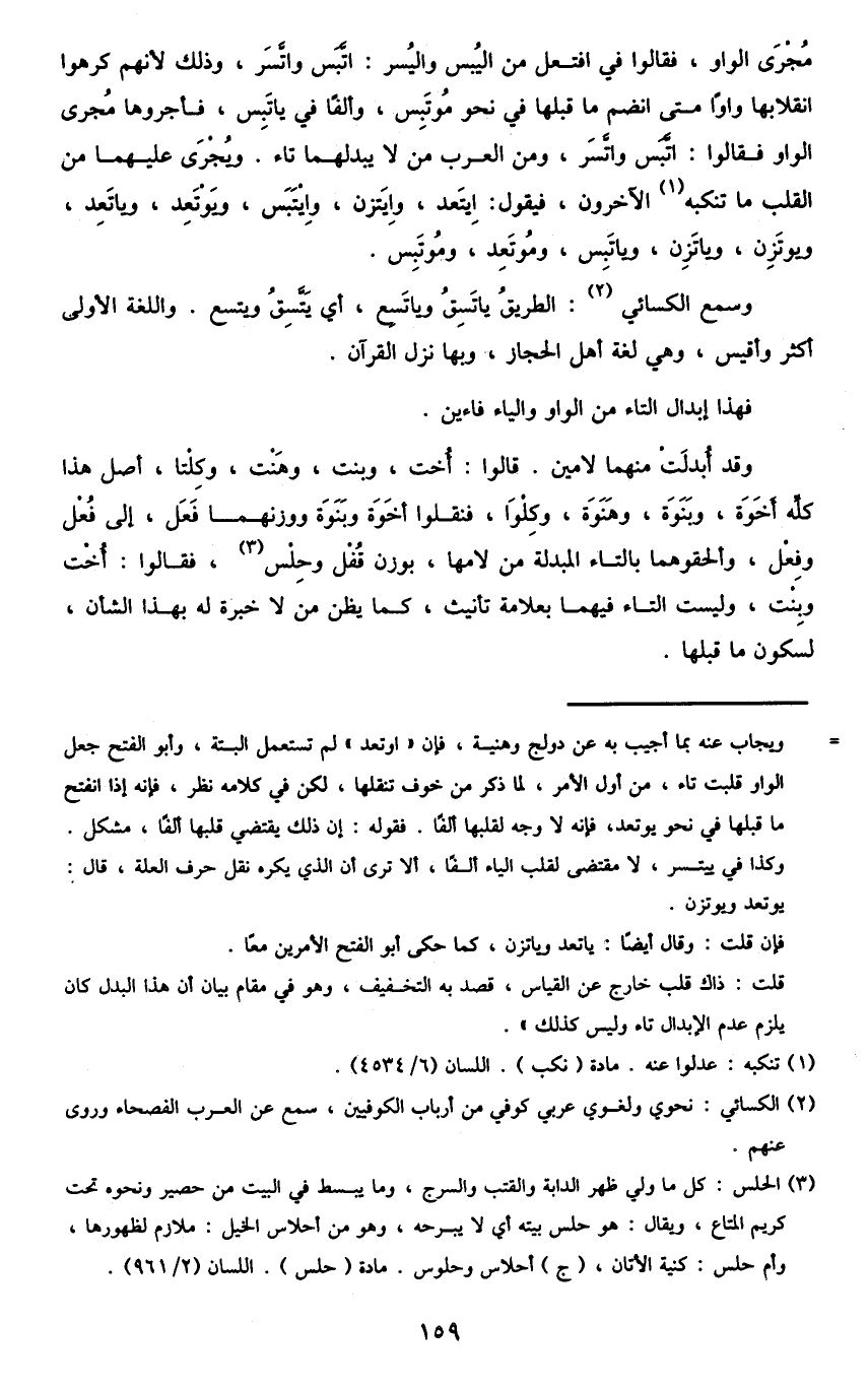 وسمع الكسائي2: الطريق ياتسق وياتسع، أي يتسق ويتسع. واللغة الأولى أكثر وأقيس، وهي لغة أهل الحجاز، وبها نزل القرآن.