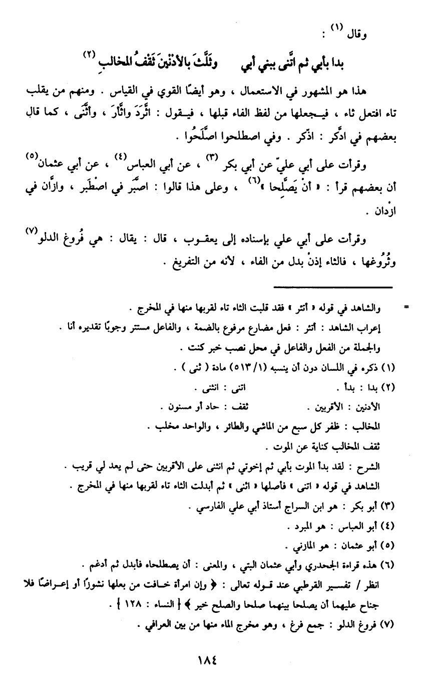 3 أبو بكر: هو ابن السراج أستاذ أبي علي الفارسي.
