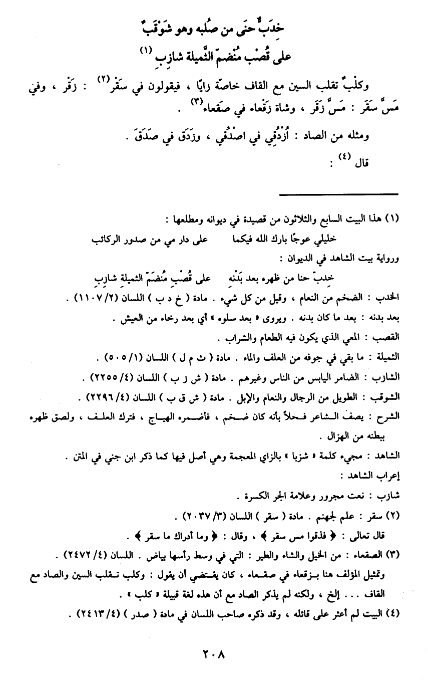 الشاهد: مجيء كلمة "شزبا" بالزاي المعجمة وهي أصل فيها كما ذكر ابن جني في المتن.