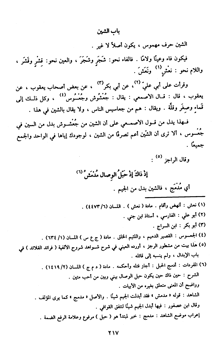 وقال ابن عصفور: فيها أبدل الجيم شينا لتتفق القوافي.