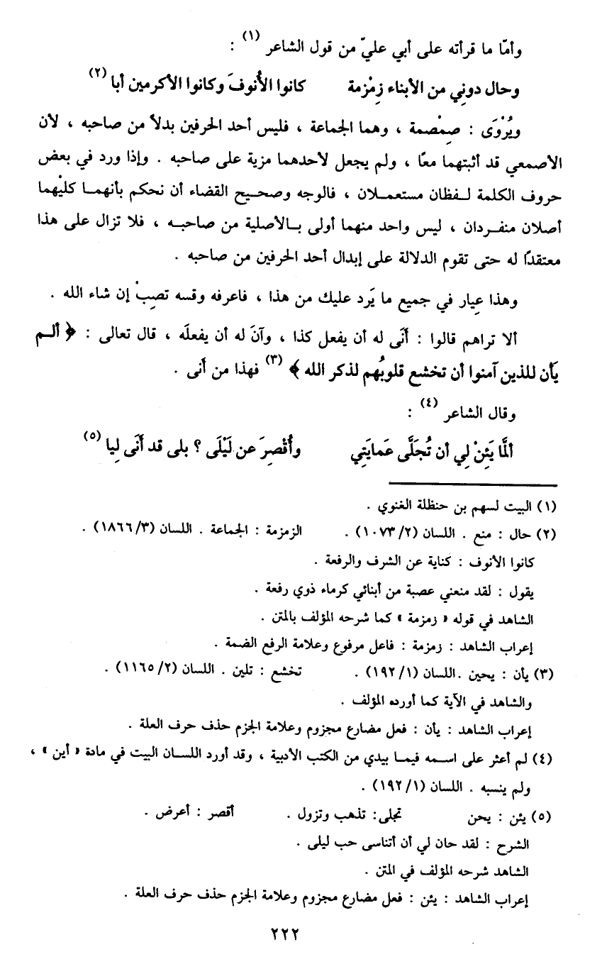 ألا تراهم قالوا: أنى له أن يفعل كذا، وآن له أن يفعله، قال تعالى: {أَلَمْ يَأْنِ لِلَّذِينَ آمَنُوا أَنْ تَخْشَعَ قُلُوبُهُمْ لِذِكْرِ اللَّه} 3 فهذا من أنى.