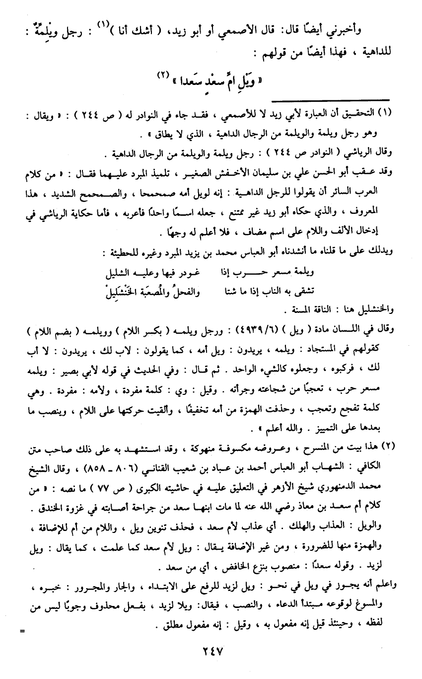 1 التحقيق أن العبارة لأبي زيد لا للأصمعي، فقد جاء في النوادر له "ص244": "ويقال: وهو رجل ويلمة والويلمة من الرجال الداهية، الذي لا يطاق".
