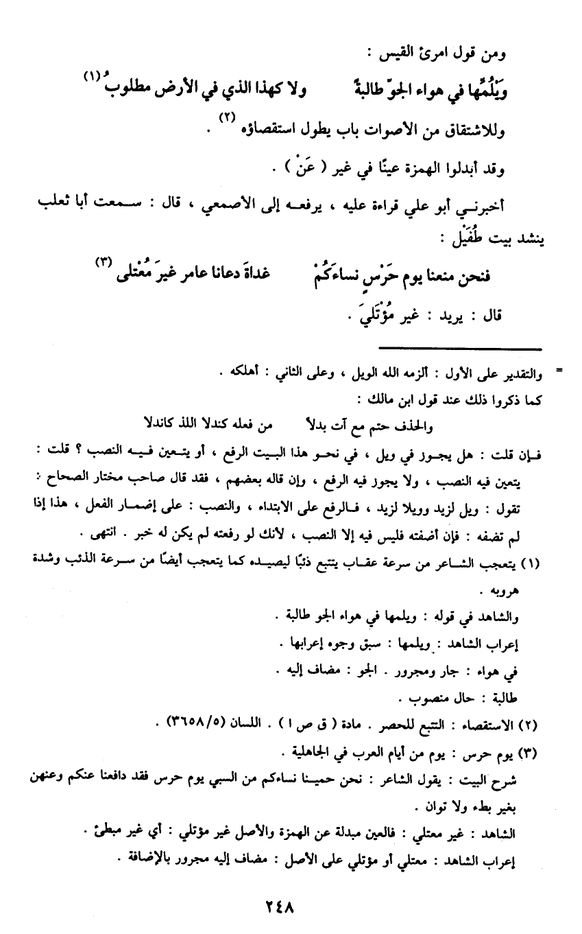 وأخبرني أبو علي قراءة عليه، يرفعه إلى الأصمعي، قال: سمعت أبا ثعلب ينشد بيت طفيل: