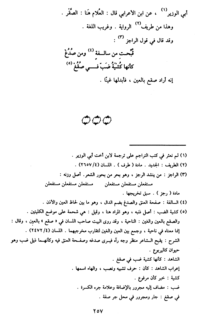 3 الراجز: من ينشد الرجز، وهو بحر من بحور الشعر. أصل وزنه.