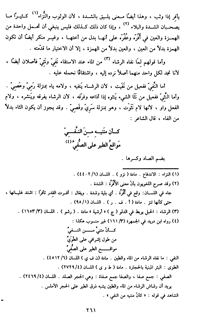 وأما قولهم لما نفاه الرشاء3 من الماء عند الاستقاء نفي ونثي فأصلان أيضا، لأنا نجد لكل واحد منهما أصلا نرده إليه، واشتقاقا نحمله عليه.