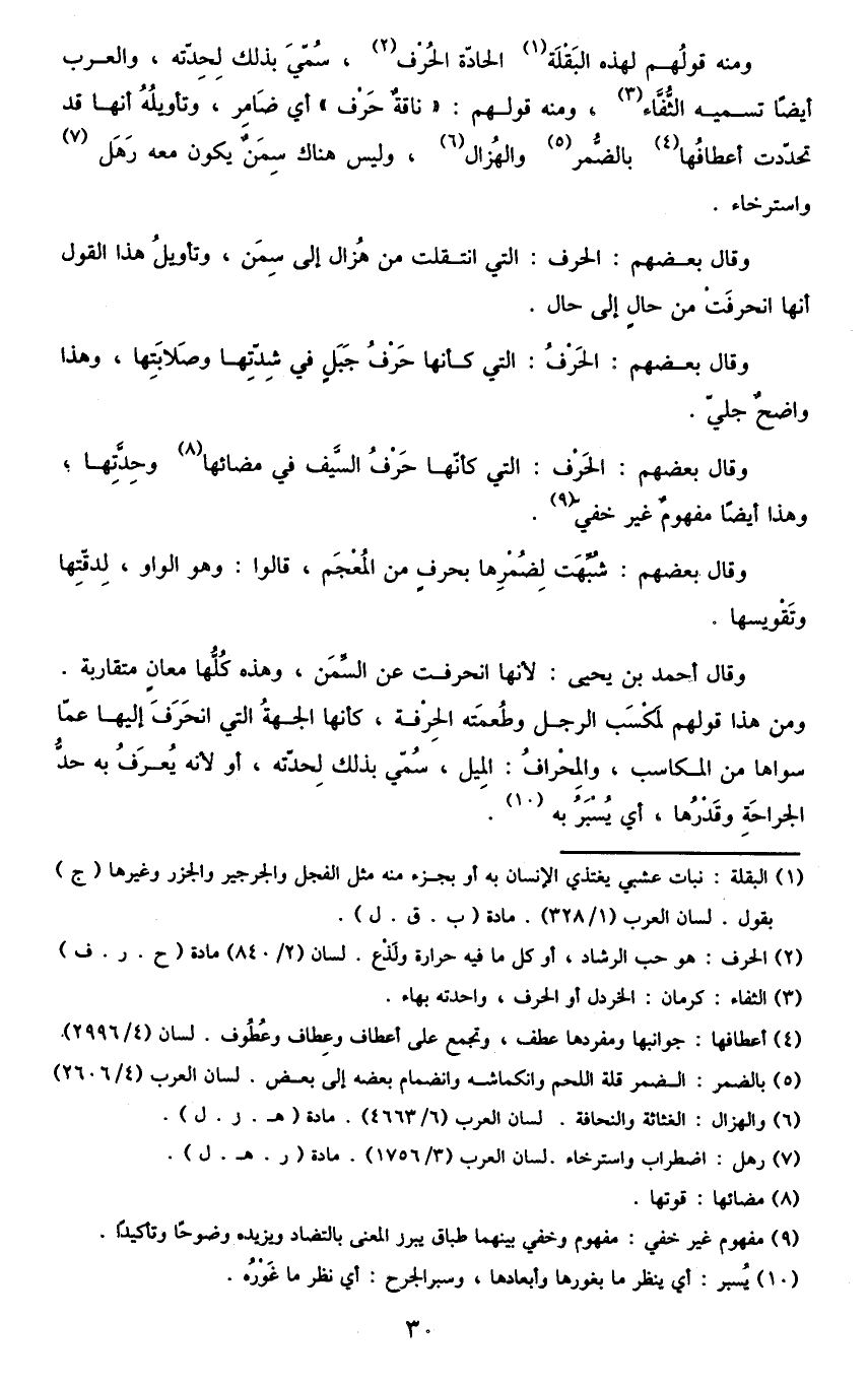 ومنه قولهم لهذه البقلة1 الحادة الحرف2 سمي بذلك لحدته، والعرب أيضا تسميه الثفاء3 ومنه قولهم: "ناقة حرف" أي ضامر، وتأويله أنها قد تحددت أعطافها4 بالضمر5 والهزال6، وليس هناك سمن يكون معه رهل7 واسترخاء.