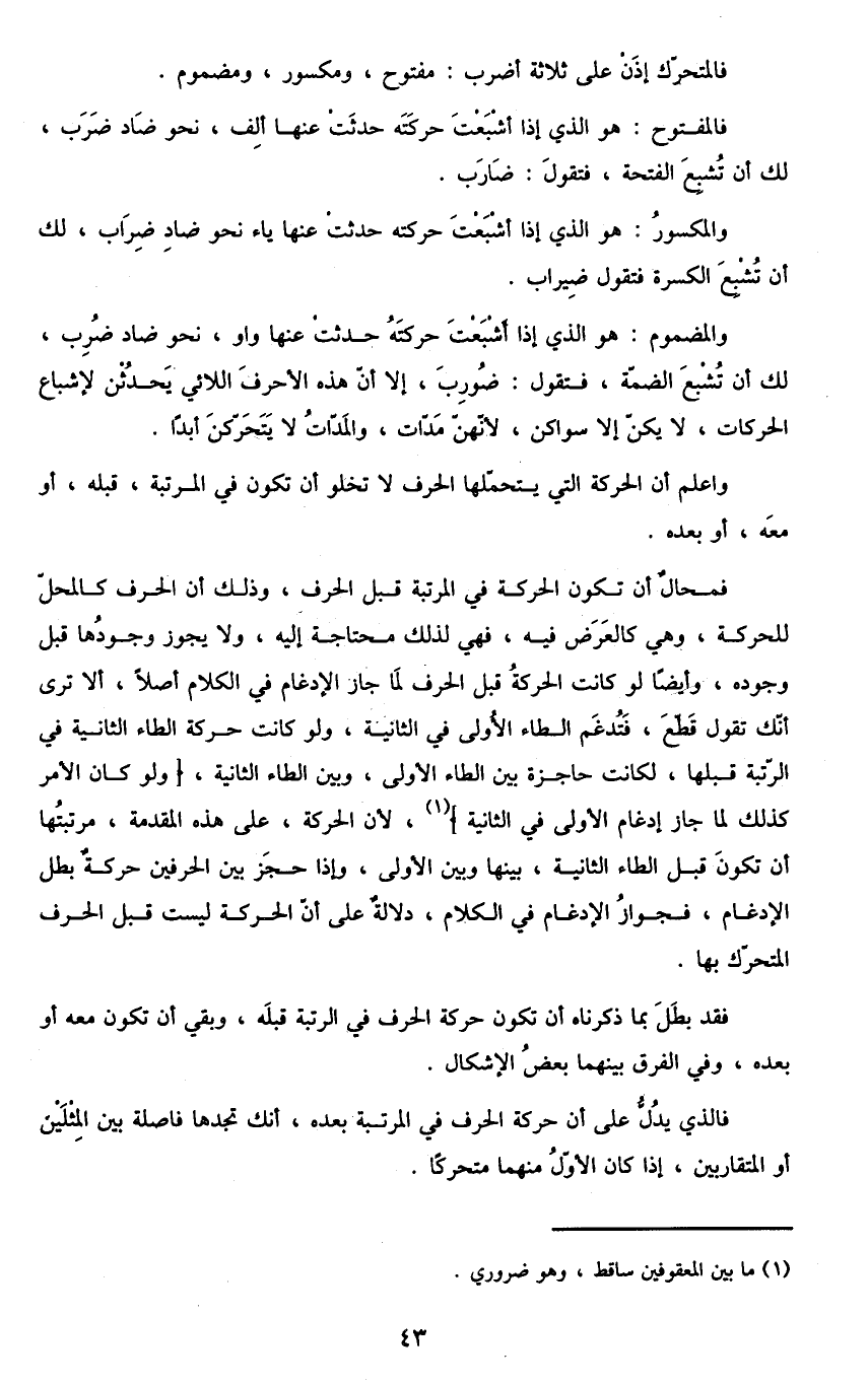 فالمتحرك إذن على ثلاثة أضرب: مفتوح، ومكسور، ومضموم.