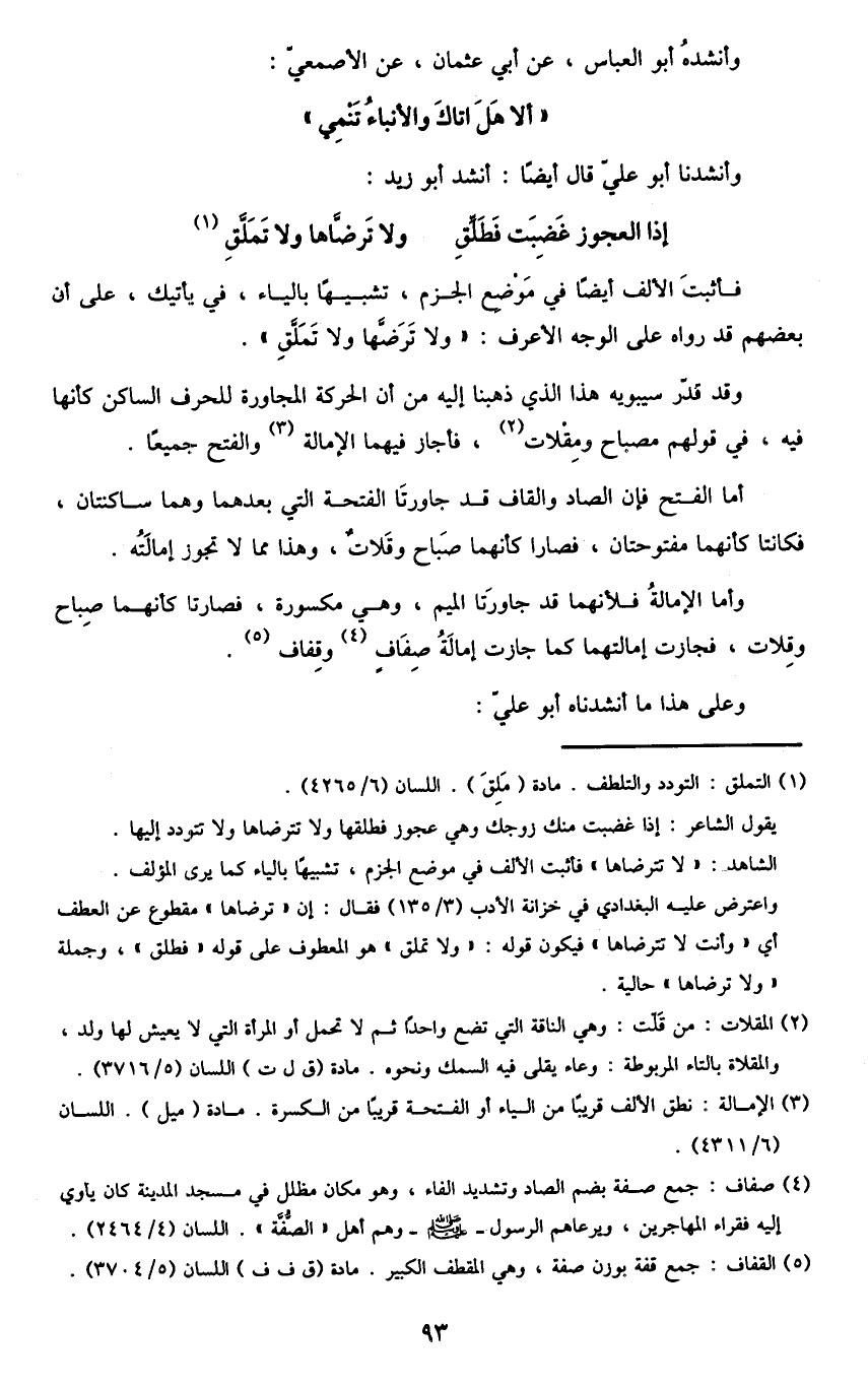 وأنشدنا أبو علي قال أيضا: أنشد أبو زيد: