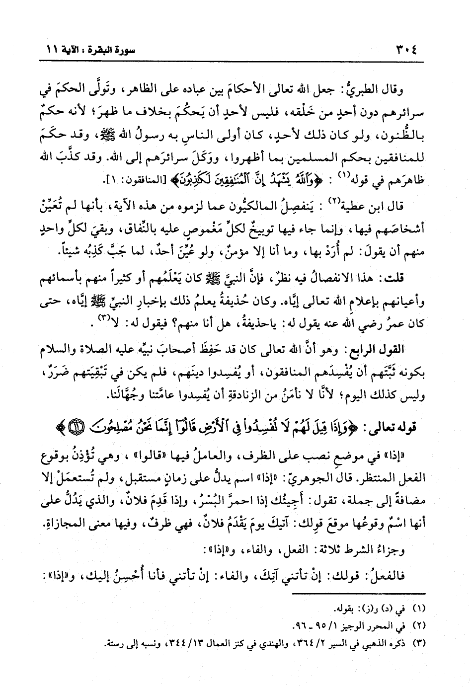 (2). في الأصول: (مجلس النظر يقول). والتصويب والزيادة عن كتاب البحر لابي حيان. وقد عقب عليه بقوله: (وفي هذه الحكاية عن ابن العربي من التخطيط ما يتعجب من حاكيها، وهو قوله: سَمِعْتُ الشَّاشِيَّ فِي مَجْلِسِ النَّضْرِ بْنِ شُمَيْلٍ، وبين النضر والشاشي من السنين مئون إلا إن كان ثم مكان معروف بمجلس النضر بن شميل فيمكن). والشاشي هنا هو محمد بن أحمد بن الحسين بن عمر المعروف بأبي بكر الشاشي ولد بميافارقين سنة 429 هـ وتوفى سنة 507 هـ (راجع طبقات الشافعية ج 4 ص 57). أما النصر بن شميل فقد توفى سنة ثلاث وقيل أربع ومائتين (راجع بغية الوعاة ووفيات الأعيان). وولد أبو بكر بن العربي سنة 468 وتوفى سنة 543 هـ (راجع طبقات المفسرين).