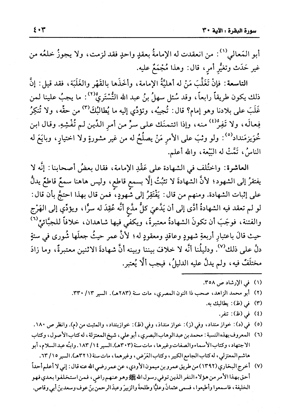 فَمَنْ أَنْكَرَ التَّسْكِينَ فِي حَرْفِ الْإِعْرَابِ فَحُجَّتُهُ أَنَّ ذَلِكَ لَا يَجُوزُ مِنْ حَيْثُ كَانَ عَلَمًا لِلْإِعْرَابِ. قَالَ أَبُو عَلِيٍّ: وَأَمَّا حَرَكَةُ الْبِنَاءِ فَلَمْ يَخْتَلِفِ النُّحَاةُ فِي جَوَازِ تَسْكِينِهَا مَعَ تَوَالِي الْحَرَكَاتِ. وَأَصْلُ بَرَأَ مِنْ تَبَرَّى الشَّيْءُ مِنَ الشَّيْءِ وَهُوَ انْفِصَالُهُ مِنْهُ. فَالْخَلْقُ قَدْ فُصِلُوا مِنَ الْعَدَمِ إِلَى الْوُجُودِ وَمِنْهُ بَرَأْتُ مِنَ الْمَرَضِ بَرْءًا (بِالْفَتْحِ) كَذَا يَقُولُ أَهْلُ الْحِجَازِ. وَغَيْرُهُمْ يَقُولُ بَرِئْتُ مِنَ الْمَرَضِ بُرْءًا (بِالضَّمِّ) وَبَرِئْتُ مِنْكَ وَمِنَ الدُّيُونِ وَالْعُيُوبِ بَرَاءَةً وَمِنْهُ الْمُبَارَأَةُ لِلْمَرْأَةِ. وَقَدْ بَارَأَ شَرِيكَهُ وَامْرَأَتَهُ قَوْلُهُ تَعَالَى: (فَتابَ عَلَيْكُمْ) فِي الْكَلَامِ حَذْفٌ تَقْدِيرُهُ فَفَعَلْتُمْ فَتَابَ عَلَيْكُمْ أَيْ فَتَجَاوَزَ عَنْكُمْ أَيْ عَلَى الْبَاقِينَ مِنْكُمْ. (إِنَّهُ هُوَ التَّوَّابُ الرَّحِيمُ) تقدم «1» معناه والحمد لله.