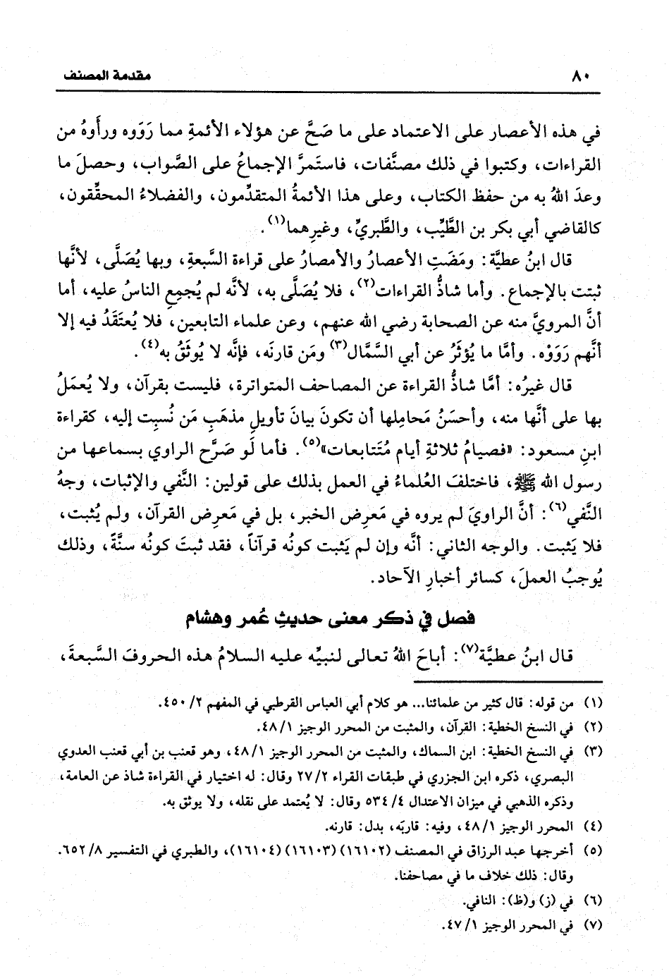 لا خلاف بين الأمة ولأبين الْأَئِمَّةِ أَهْلِ السُّنَّةِ، أَنَّ الْقُرْآنَ اسْمٌ لِكَلَامِ اللَّهِ تَعَالَى الَّذِي جَاءَ بِهِ مُحَمَّدٌ صَلَّى اللَّهُ عَلَيْهِ وَسَلَّمَ مُعْجِزَةً لَهُ عَلَى نَحْوِ مَا تَقَدَّمَ وَأَنَّهُ مَحْفُوظٌ فِي الصُّدُورِ، مَقْرُوءٌ بِالْأَلْسِنَةِ، مَكْتُوبٌ فِي الْمَصَاحِفِ، مَعْلُومَةٌ عَلَى الِاضْطِرَارِ سوره وآياته، مبرأة من الزيادة عَلَيْهِ أَوْ نُقْصَانًا مِنْهُ، فَقَدْ أَبْطَلَ الْإِجْمَاعَ، وَبَهَتَ النَّاسَ، وَرَدَّ مَا جَاءَ بِهِ الرَّسُولُ صَلَّى اللَّهُ عَلَيْهِ وَسَلَّمَ مِنَ الْقُرْآنِ الْمُنَزَّلِ عَلَيْهِ وَرَدَّ قَوْلُهُ تَعَالَى:" قُلْ لَئِنِ اجْتَمَعَتِ الْإِنْسُ وَالْجِنُّ عَلى أَنْ يَأْتُوا بِمِثْلِ هذَا الْقُرْآنِ لَا يَأْتُونَ بِمِثْلِهِ وَلَوْ كانَ بَعْضُهُمْ لِبَعْضٍ ظَهِيراً «1» " وأبطل آية رسوله