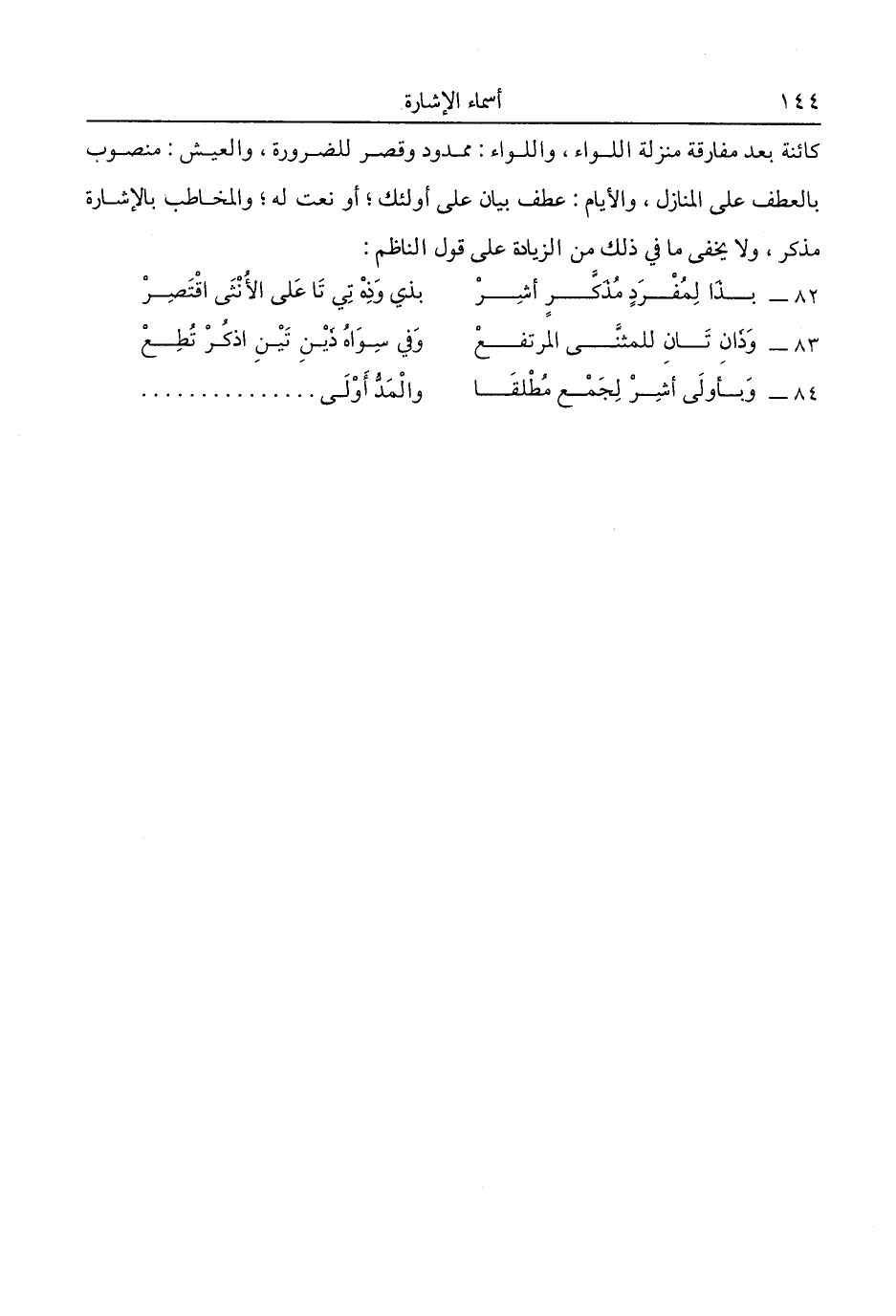 بذا لمفرد مذكر أشر ... بذي وذه تي تا على الأنثى اقتصر