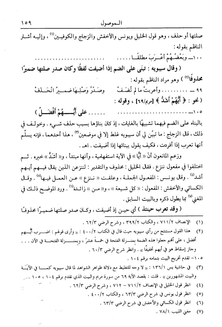 3 في حاشية يس 1/ 136: "لا وجه للتغليط مع دلالة ظواهر الشواهد لما قال سيبويه كما في الآية والبيت المشهورين". قلت: يقصد الآية: 69 من سورة مريم, والبيت الذي تقدم برقم 104، 105.