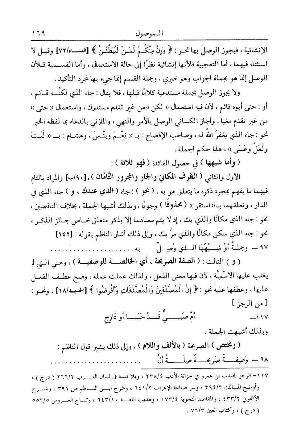 "وتختص الصريحة "بالألف واللام"، وإلى ذلك يشير قول الناظم: